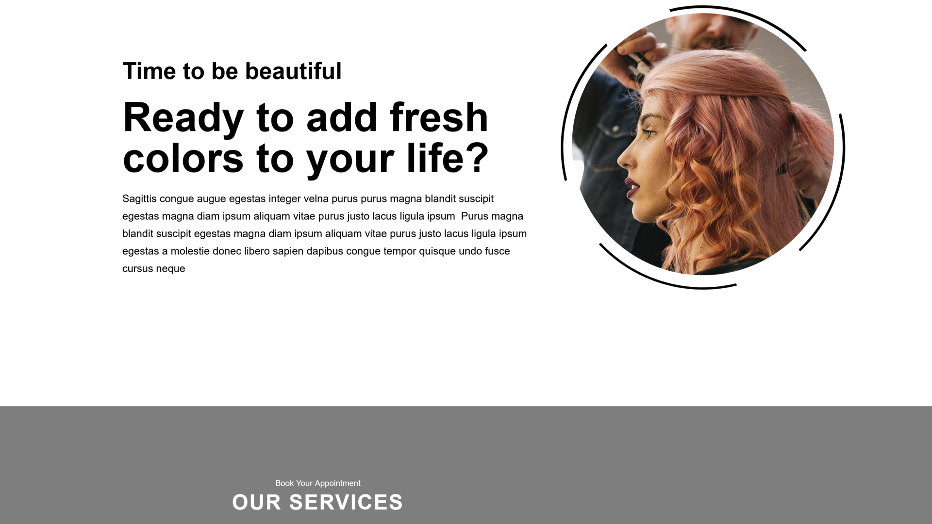 • Services: A detailed services page to display everything you offer, from hairstyling and treatments to makeup and spa therapies.