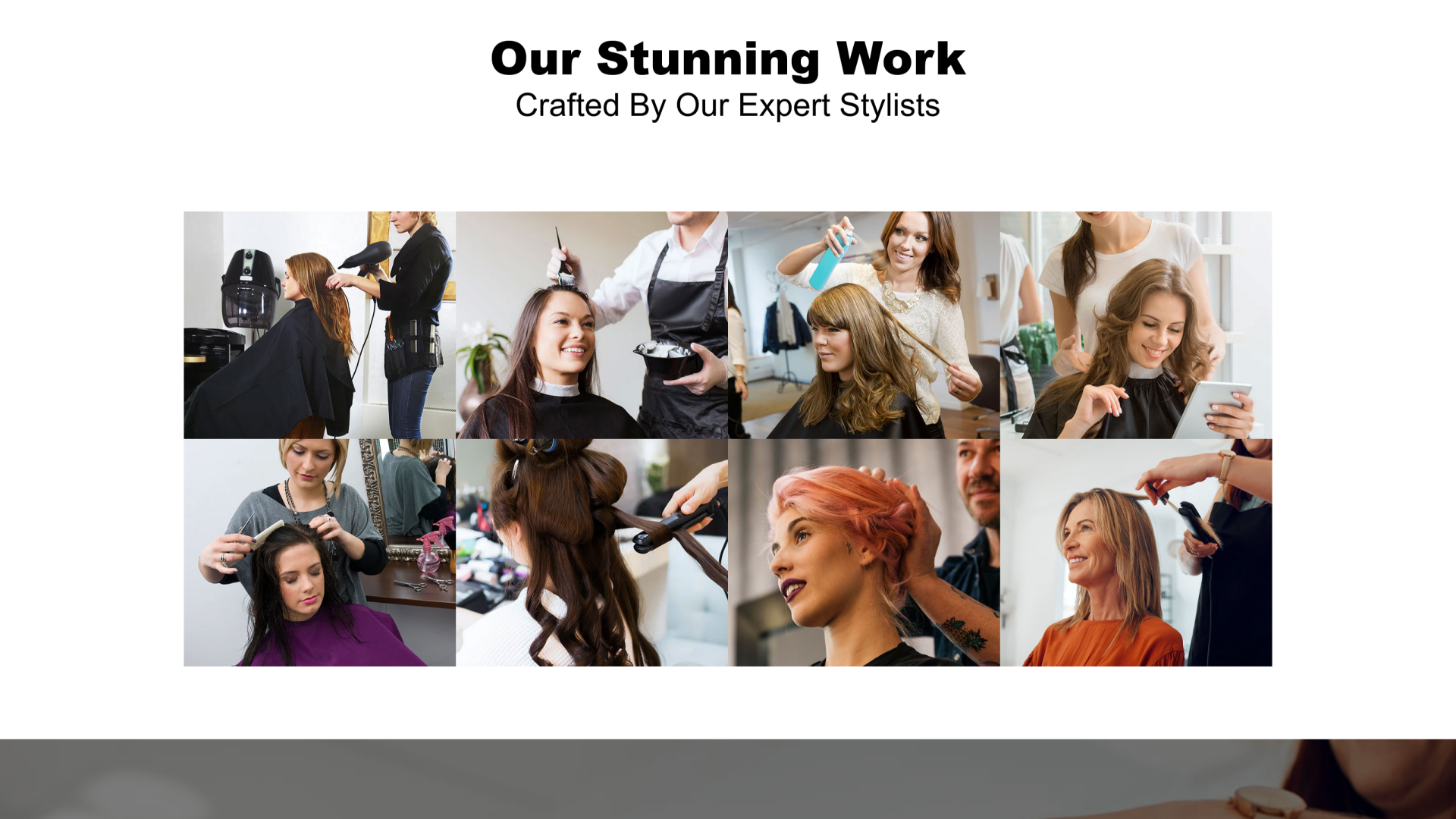 • Portfolio/Gallery: A visually rich gallery to showcase your salon's creative work, transformations, and ambiance.